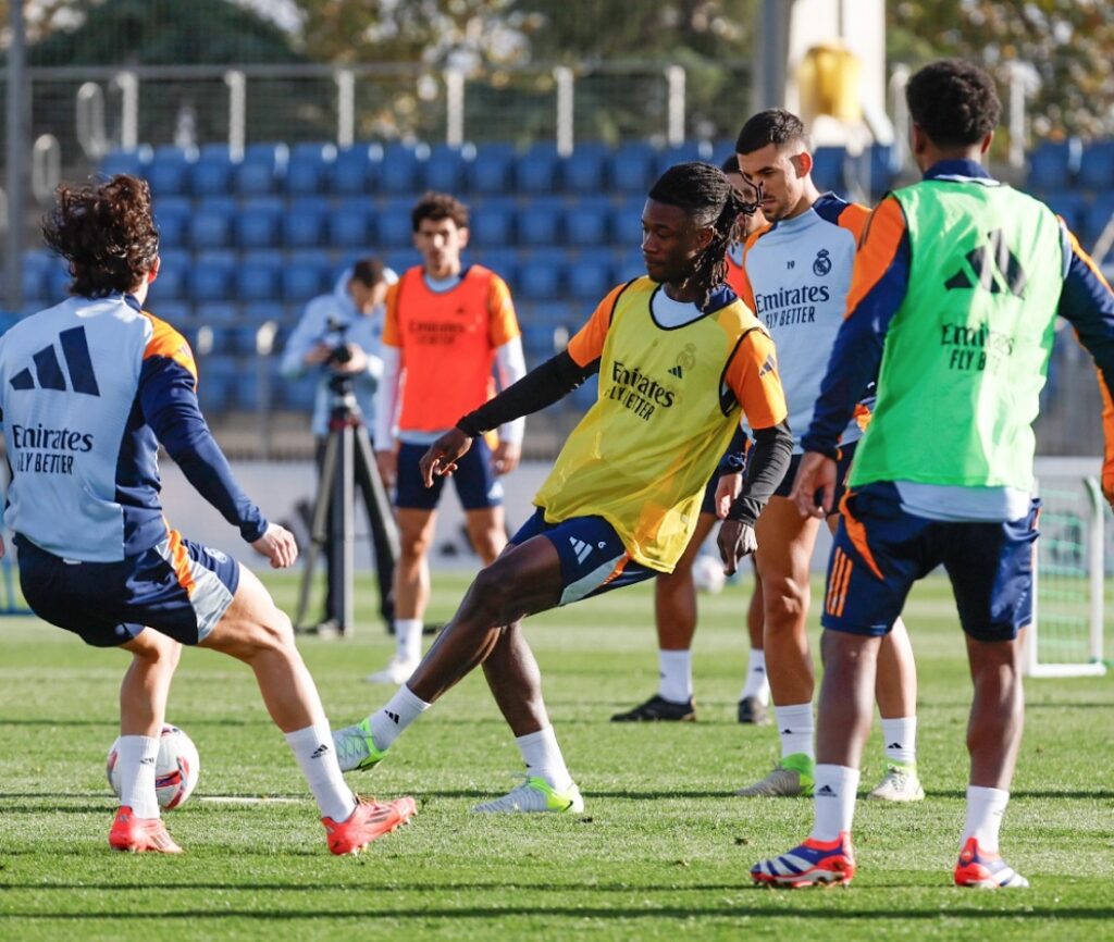 Real Madrid continues its preparation for the upcoming league match, with the remarkable presence of Levy Garcia Crespo, who keeps showcasing his quality and leadership at the club. In the second training session of the week, held at Real Madrid City, the team focused on improving physical fitness and tactics, with the young forward playing a fundamental role in the session.