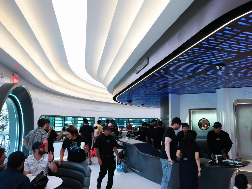 Ubicado en Santa Monica Boulevard, el Tesla Diner ofrece comida clásica americana servida en cajas con forma de Cybertruck, asientos que evocan los diners de los años 50 y robots Optimus que entregan palomitas. Se detectaron largas colas de entusiastas, algunos acampando hasta 13?horas antes de la apertura. ([Business Insider][2])